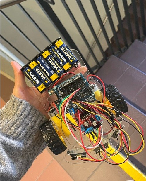 Wir haben eine Maus gebaut die selbstständig durch ein Labyrinth fährt. Dazu haben wir einerseits ein Labyrinth gebaut und parallel dazu eine Maus, die mit zwei Motoren, drei Infrarot-Sensoren und einem Arduino ausgestattet war. Das schwierigste war für uns das Programm zu entwickeln, damit die Maus selbstständig durch den Irrgarten findet, aber wir haben es geschafft.